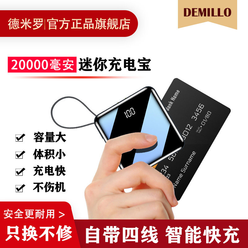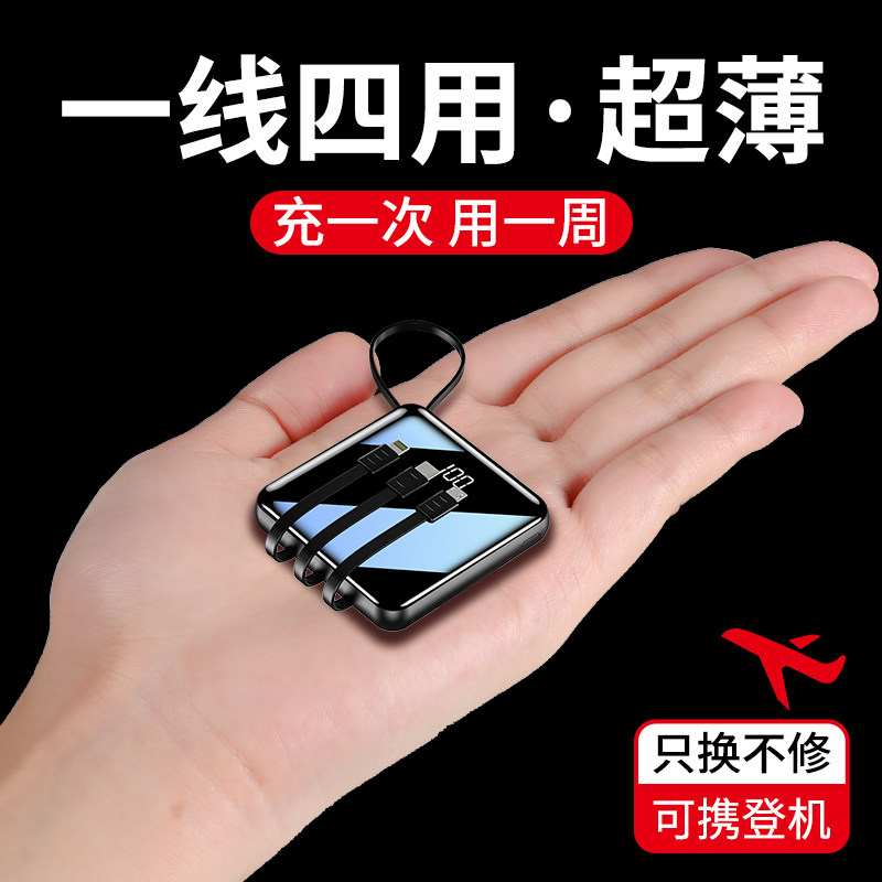 Flagship store official mobile phone fast mobile charging 20000 mAh ultra-large capacity ultra-thin suitable for Huawei Xiaomi Apple dedicated compact portable self-contained data cable three-in-one mobile power supply
