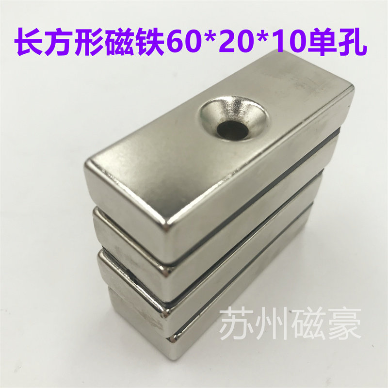 Strong magnet 60*20*10 single hole rectangular magnetic iron absorber NdFeB rectangular double hole 60X2010mm