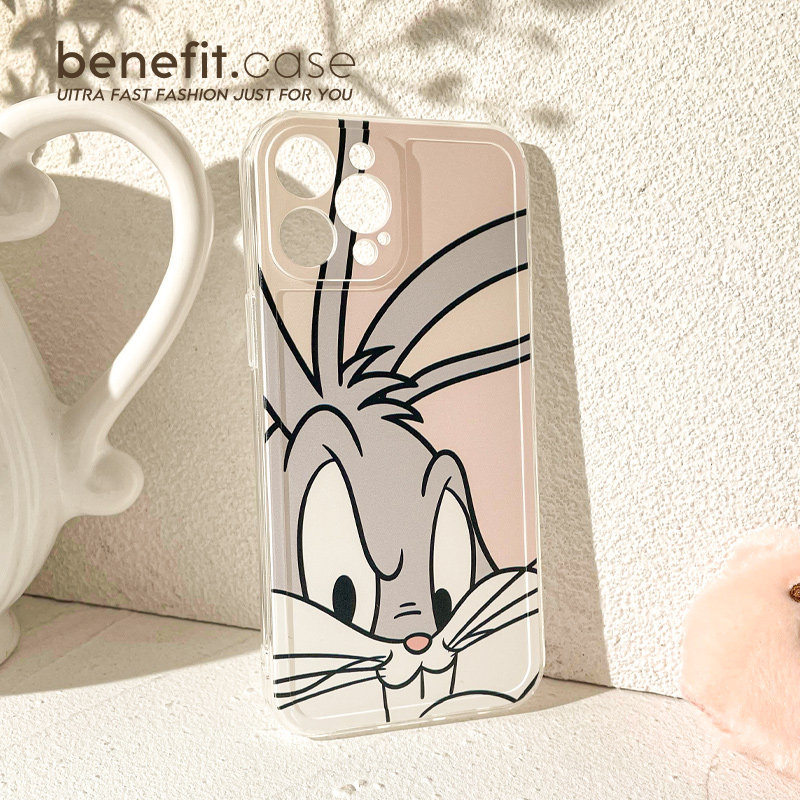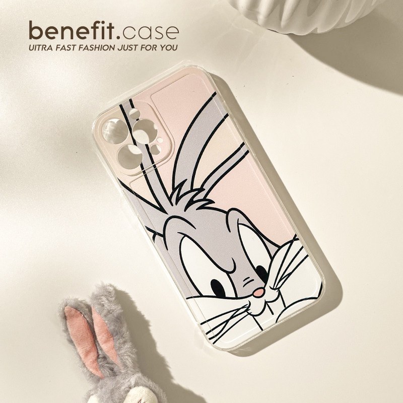 Benefit cartoon cute and bad laughing rabbit applies Apple 13promax mobile phone protection shell creative iphone12mini full package xsmax transparent xr anti-fall 8