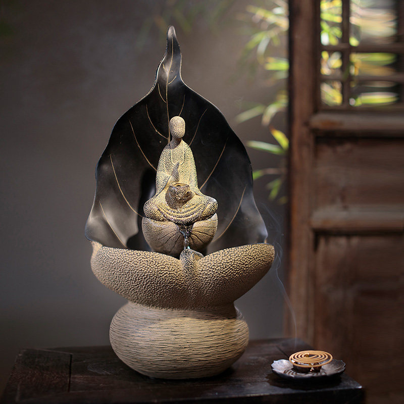 One Leaf Zen Heart Flowing Water Release Zen Flowing Water Auspicious Cloud Display Pillar (Medium)