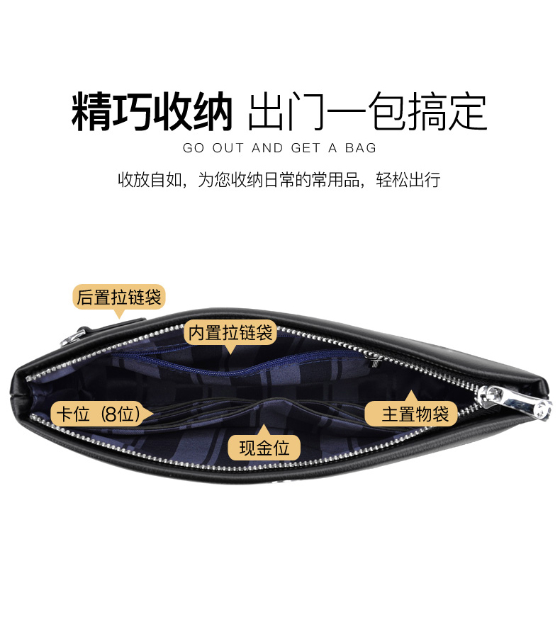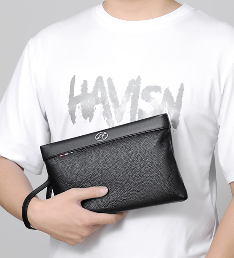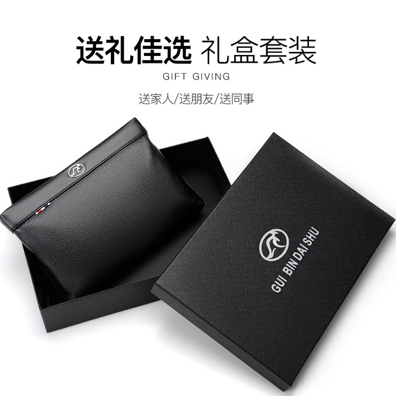 Business men's handbag light luxury leather clutch bag first layer cowhide clutch envelope bag soft leather men's bag clip bag