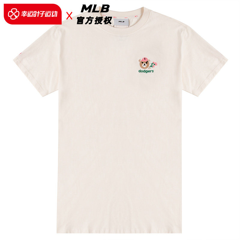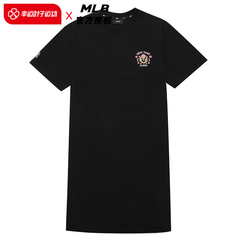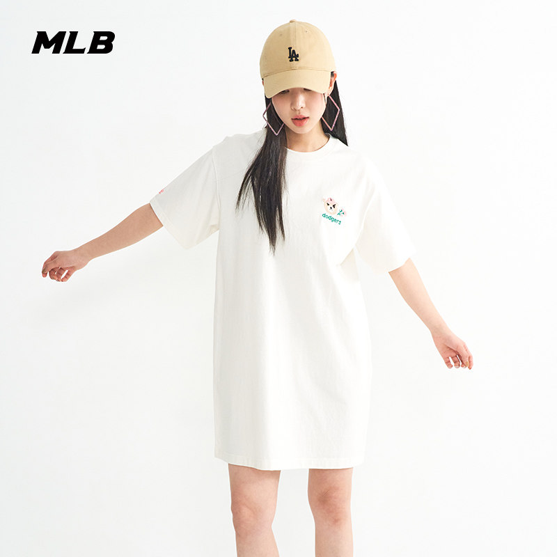 MLB Official Woman short sleeve one-piece dress Frown Brow Embroidery Short Dress 2023 Spring New Fashion T-shirt OPEC2-Taobao