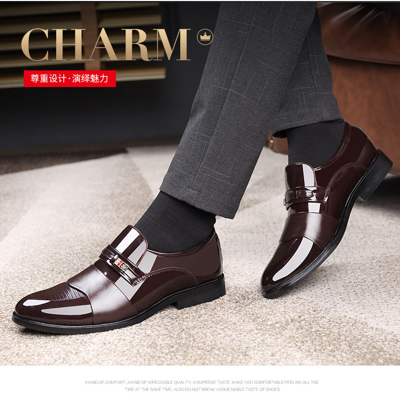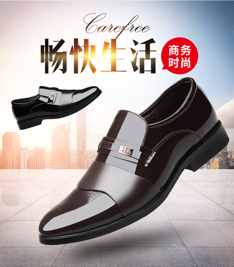 Men's Leather Shoes Dad Flat Business Formal Dress Set Feet Non-slip Bright Work Men's Suit Casual Large Size Shoes