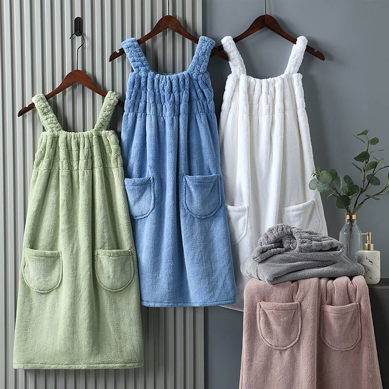 Lady with bath towel for adult wear cotton to absorb water speed dry bath dress lazy bath towel