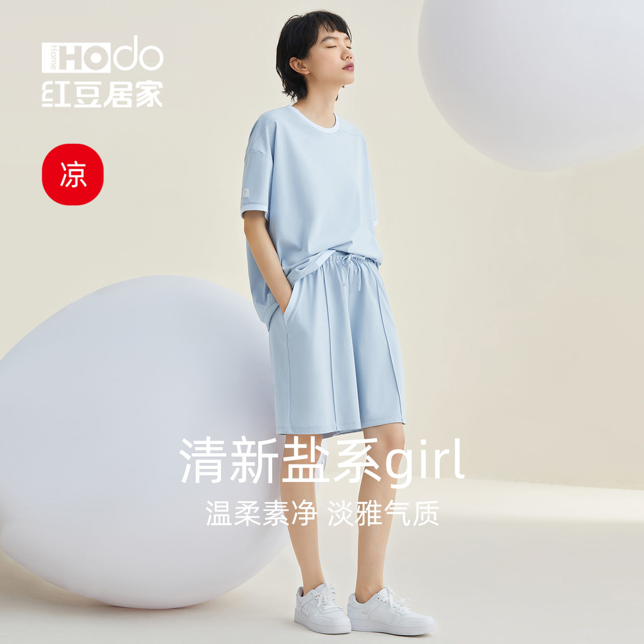 (Cool) red beans can be worn outside pajamas ladies summer loose quick drying sports casual short-sleeved home wear set
