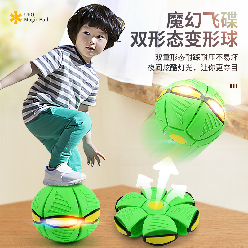 Children's outdoor magic frisbee deformation ball foot jumping luminous flying saucer ball elastic football parent-child interactive toy
