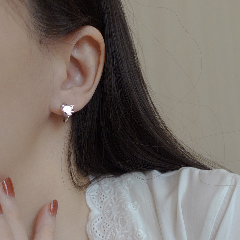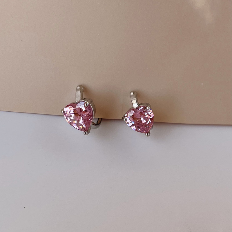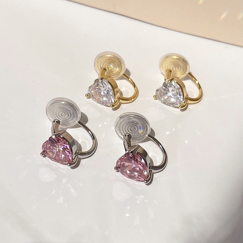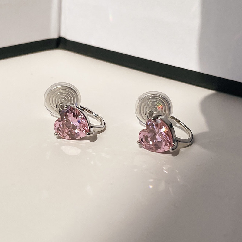 Pink sparkling heart zircon ear clip women's earless mosquito coil painless temperament light luxury earrings high-end niche