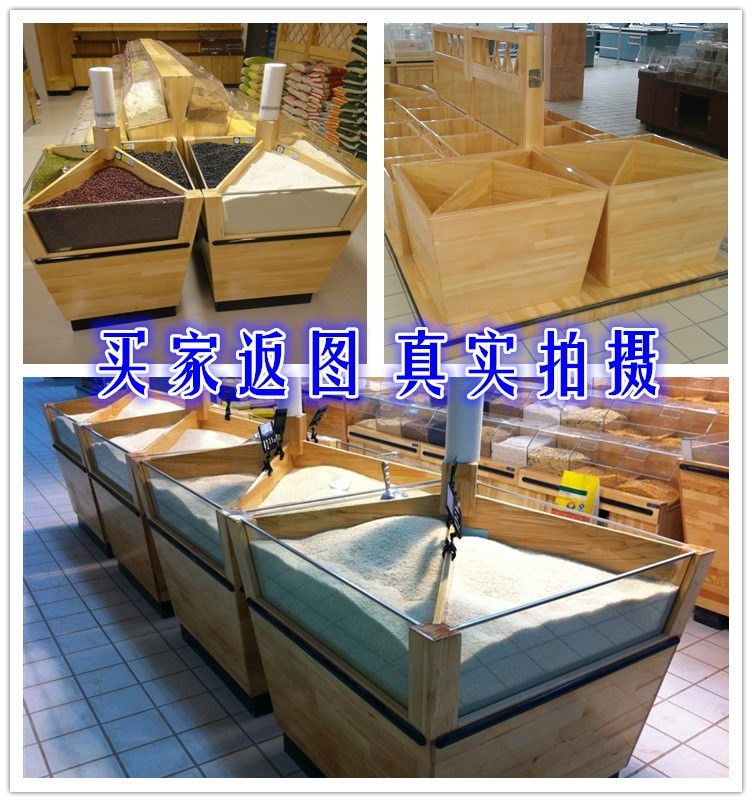 Supermarket New Jiangsu Province Shelf Rice Noodle Food Shelf Wood Rice Bucket Rice Bucket Dry Bulk Shelf Display Container