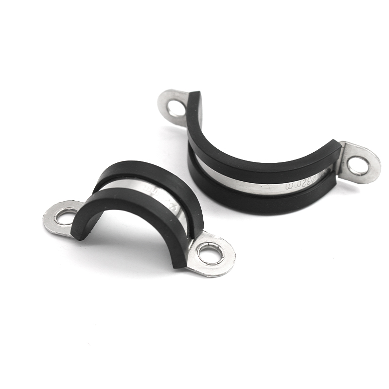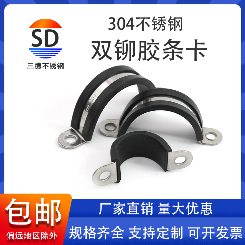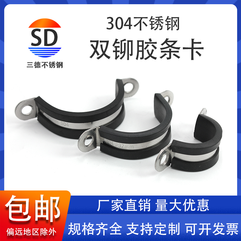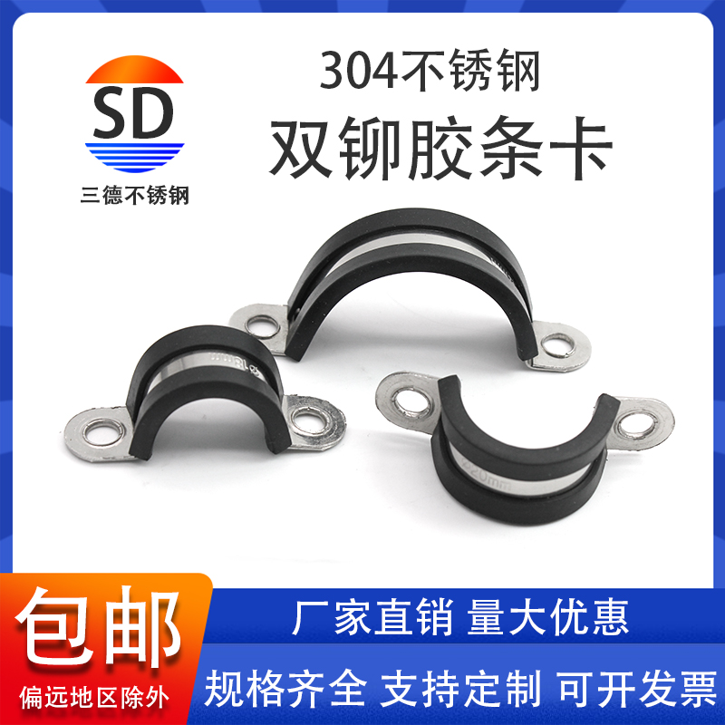 Thickened 304 stainless steel double riveting sheet with rubber strip thickened horseback riding card U-shaped rubber strip clamp with rubber strip tube card cable