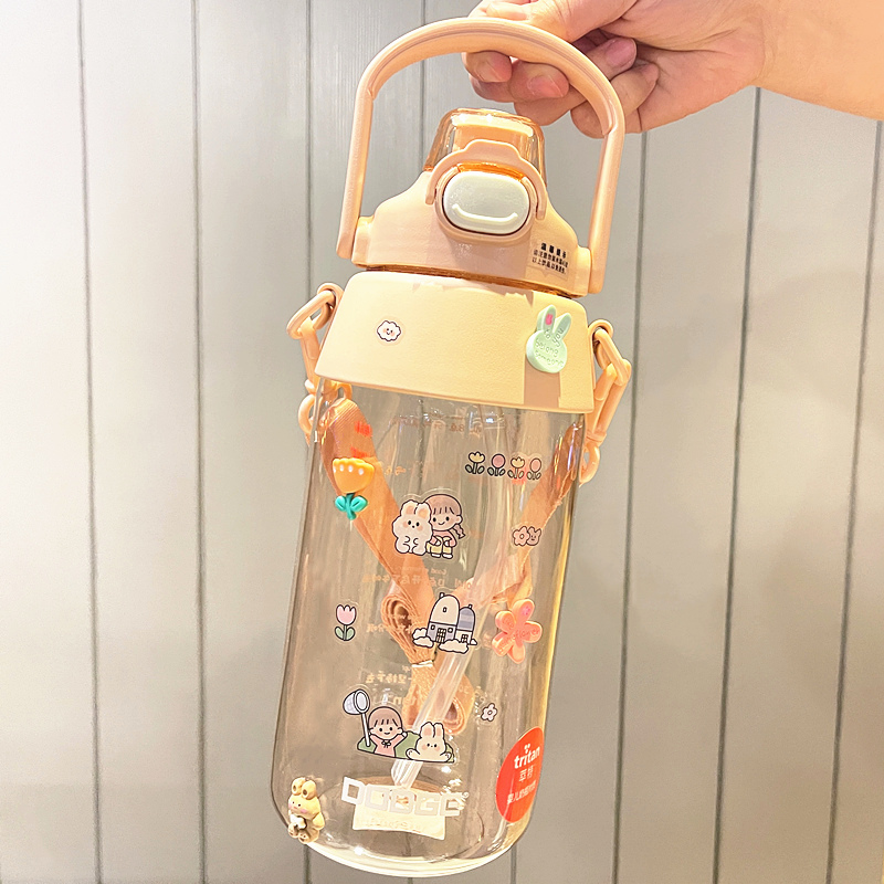 Extra-large Capacity Water Cup Female Fresh Straw Cup Men Sports Fitness Plastic Cups Outdoor Vehicular Space Cup