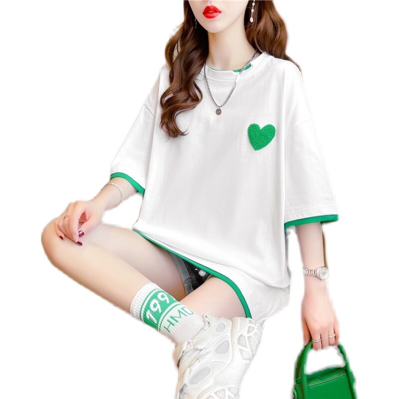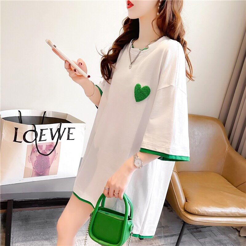 Pregnant woman T-shirt female blouses Summer thin loose medium long version of summer clothing outgoing suit Fashion style casual Two-style