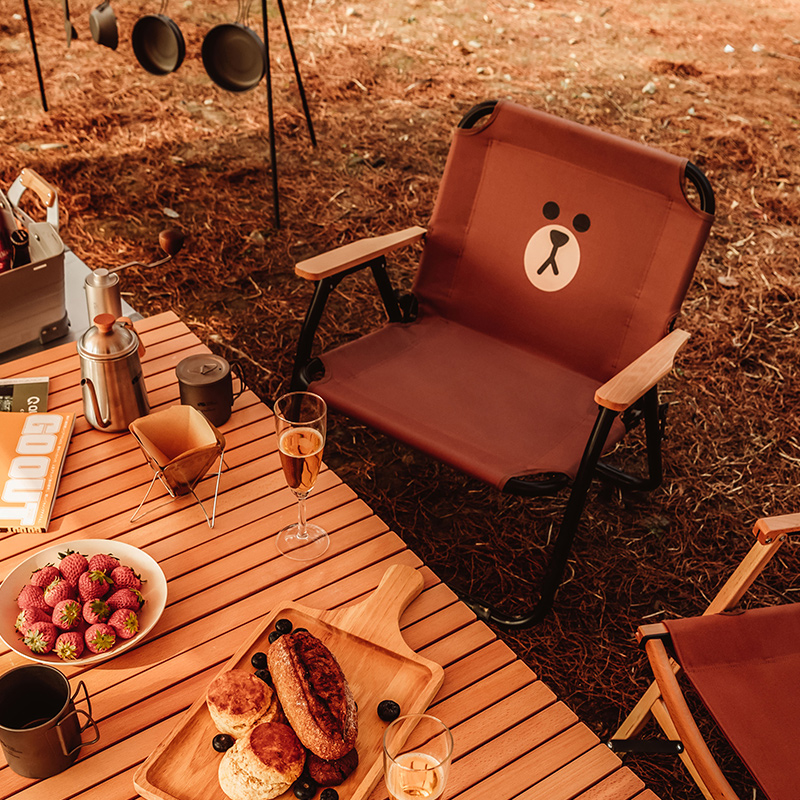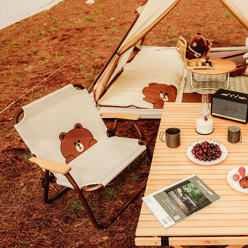 Pastoral flute outdoor folding chair portable aluminum alloy leaning back chair LineFriends Brown Bear camping chair-Taobao