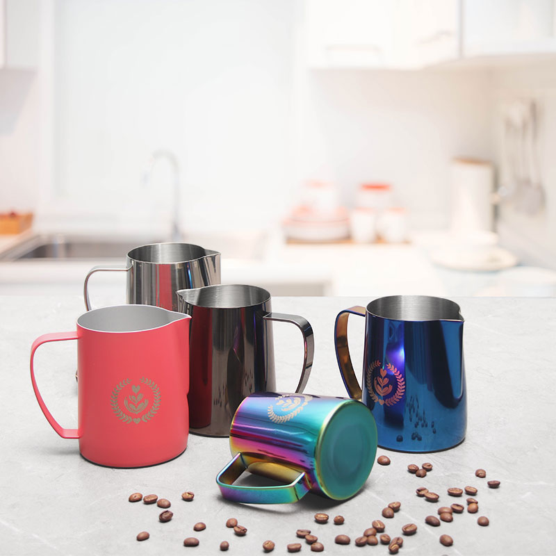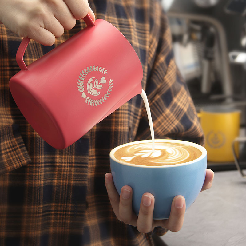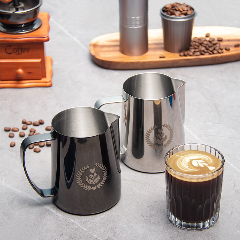 Coffee pull cylinder pointed mouth design professional compressed 304 stainless steel pull cup 350 600ml milk bubble milk cylinder