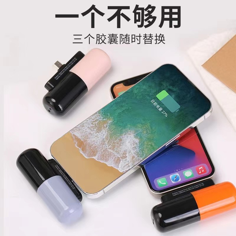 New Capsule Second-generation Mobile Charging Oversized Capacity Suit Wireless Fast Charging Straight Plug Universal Apple 13xiPhone12 Xiaomi Oppo Huawei Vivo Bring Own Line Small Portable Action Power