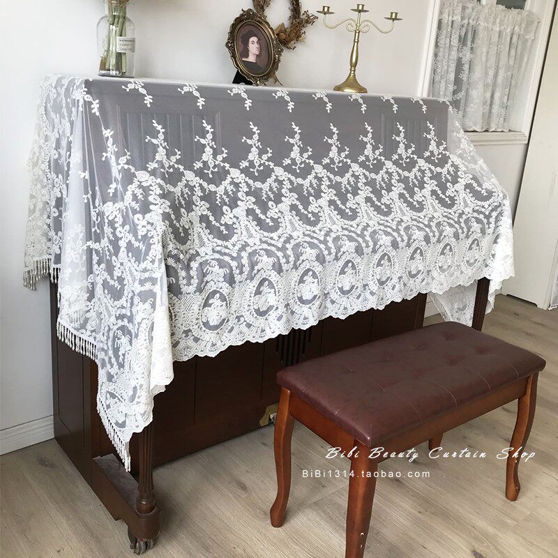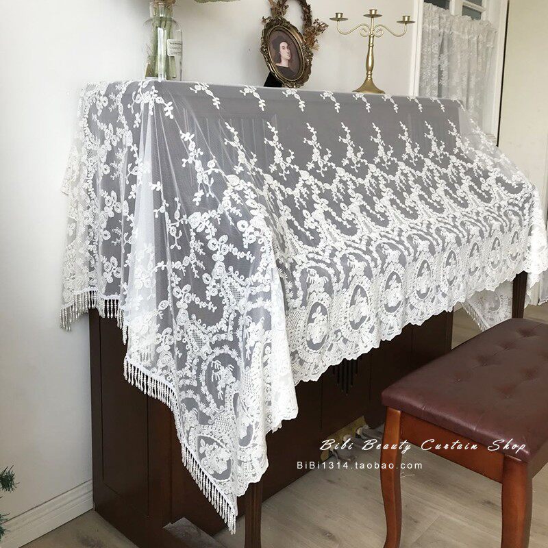 Ma Xiaomeng style retro romantic and refined high-end embroidered lace handmade pearl piano cover towels