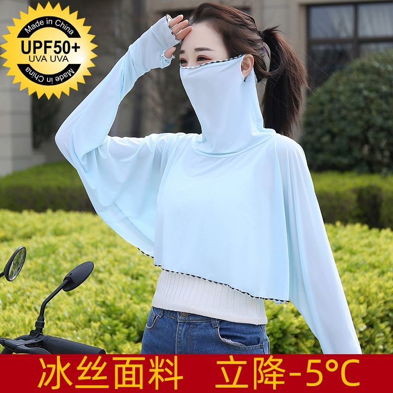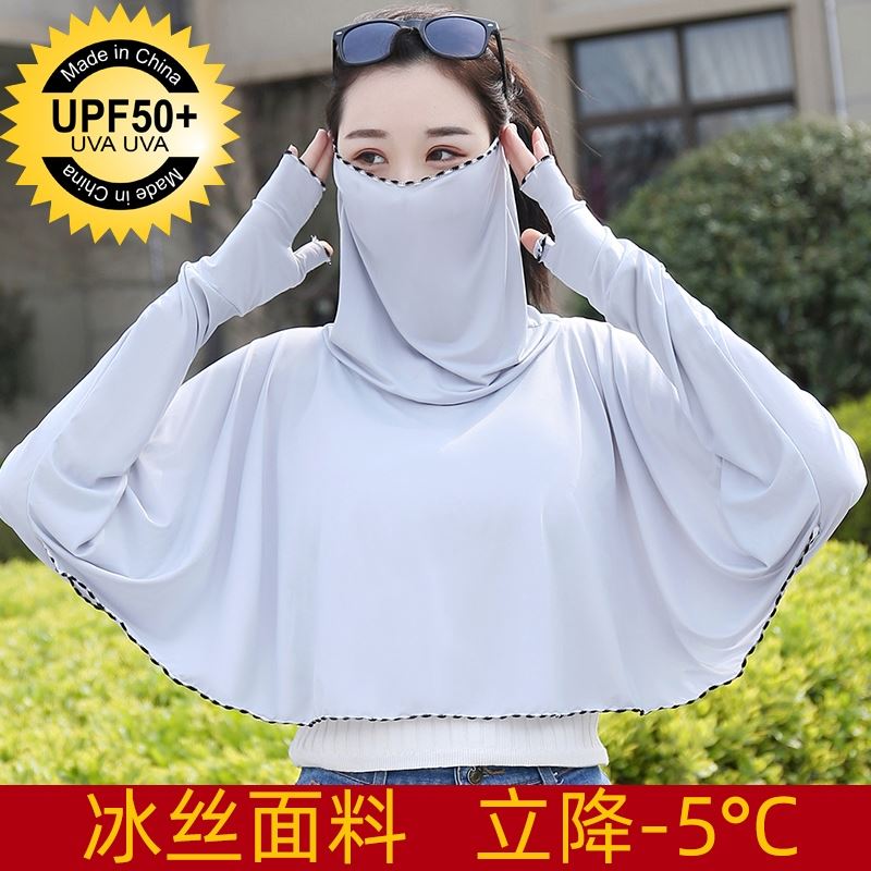 Ice Silk Sunscreen Cape Spring Summer Women's Outdoor Tours Driving Anti-UV Mask Integrated Beach Thin clothes