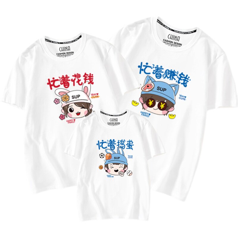 Interactive parent-child summer clothes cute short-sleeved T-shirts a family of three and four foreign-style pure cotton mother-child mother-daughter clothes tide ins