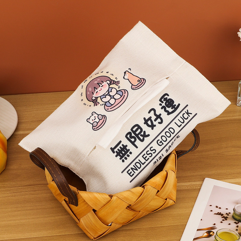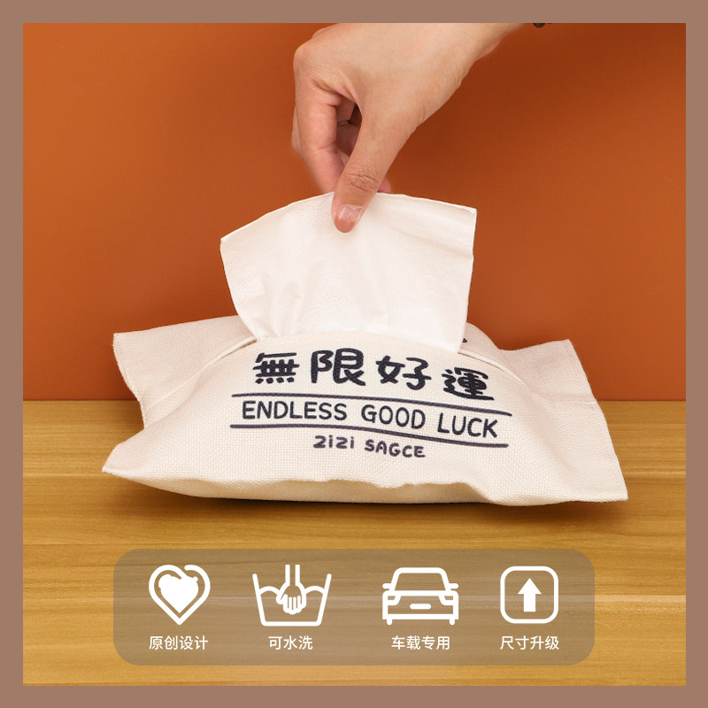 Good Luck Sesame Cheese Sauce Tissue Box Toilet Paper Box Home Living Room Car Extractable Toilet Paper Box On-board Cloth Art Napkin Box Hanging Woman