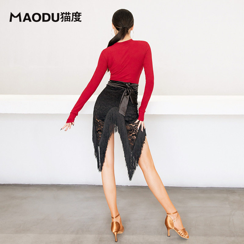 Cat-degree Latin dance dresses Dancing Costume for adults Stream Suhemian dress Short dress New Flow Su Hip Towel Half Body Dress