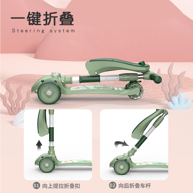 (Flagship) Dinosaur Green 360 ° Universal Wheel Foldable Removable Seat (Flagship) Dinosaur Green Riding Slide Two-in-one Collapsible Dismantling Seat (Flagship) Dinosaur Green Transport