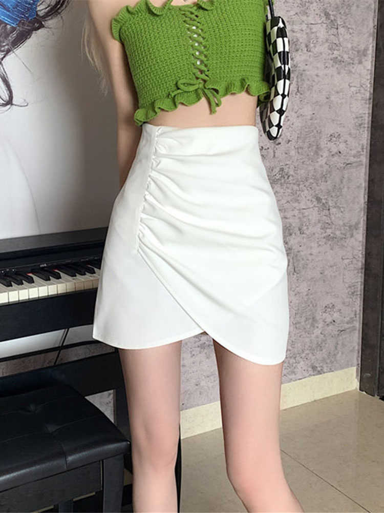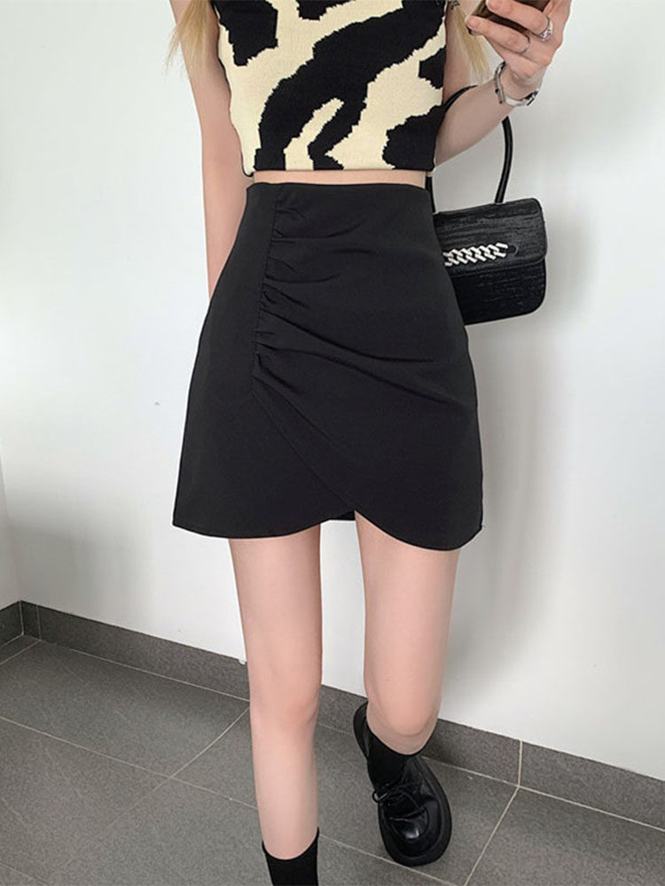 Pleated skirt large size fat sister skirt women's summer pear-shaped irregular body cover the crotch to show thin A-line skirt