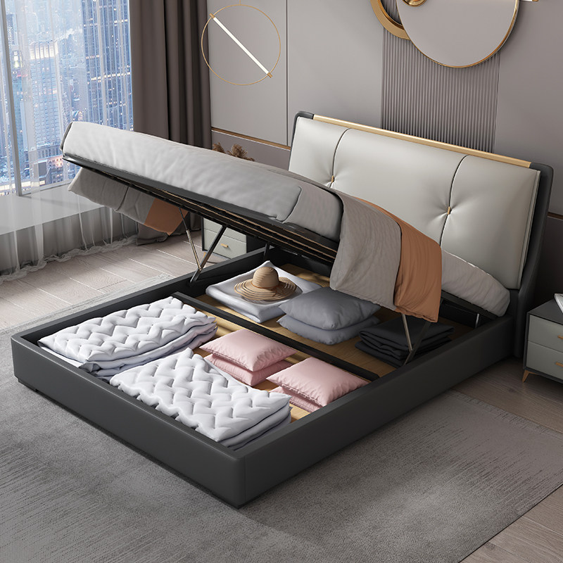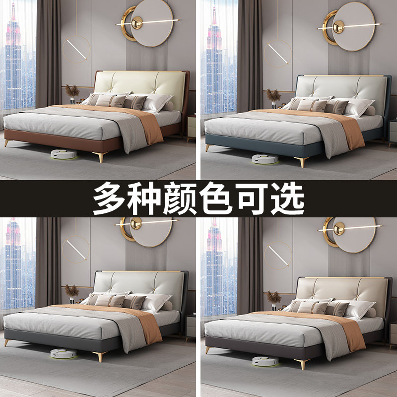 Italian light luxury leather bed modern minimalist master bedroom wedding bed 1 8 meters double bed small apartment side bed