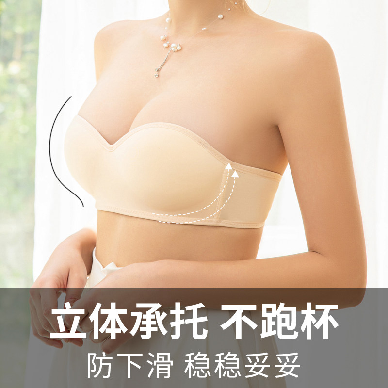 Tube top strapless underwear girl non-slip gather invisible comfortable glossy French bra summer thin section no trace