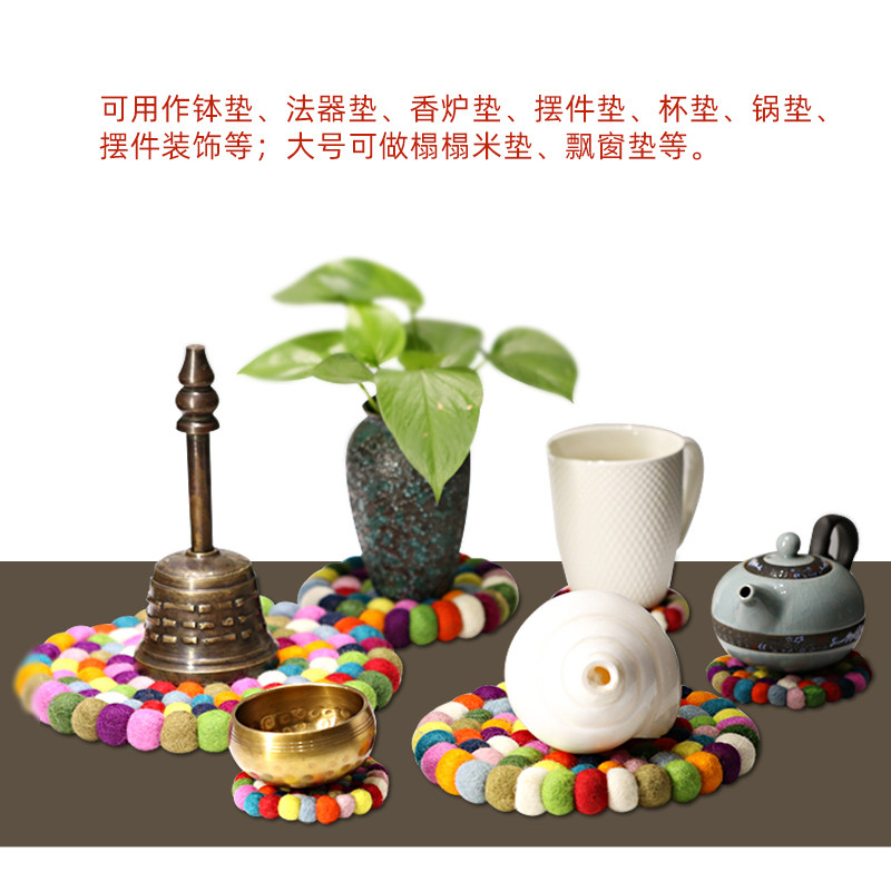 Nepal hand-made colored wool felt mat songtosonic accessories cup mat tatami wool ball yoga cushion