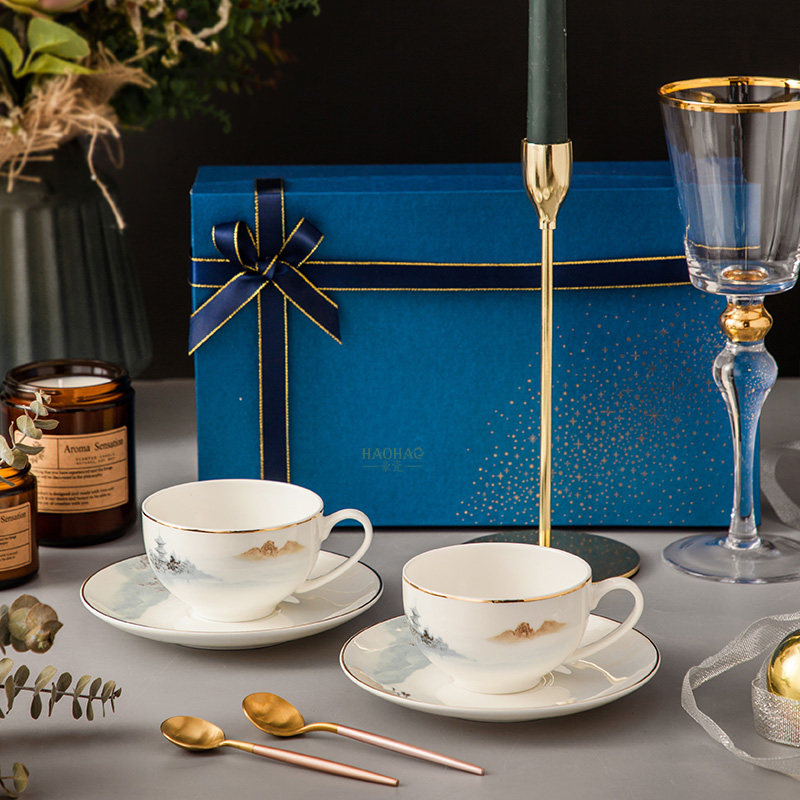 Light luxury European-style bone china coffee cup Phnom Penh creative tea set set home afternoon tea set couple cup gift box
