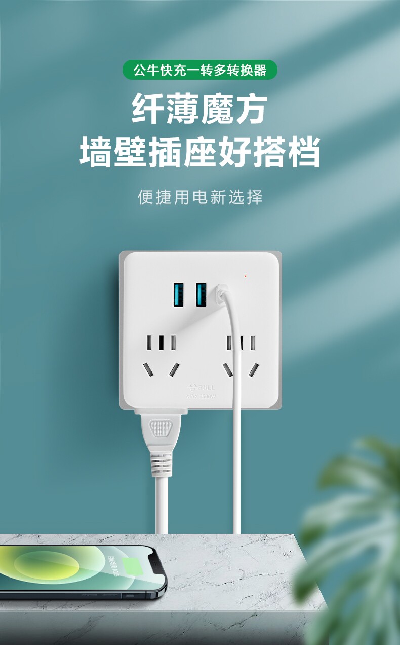Bull plug converter one turn three or four ultra-thin Rubik's cube socket on the wall row plug one minute two with switch 93223