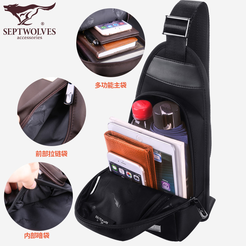 Septwolves chest bag men's bag shoulder bag messenger bag 2022 new casual canvas small backpack tide brand summer
