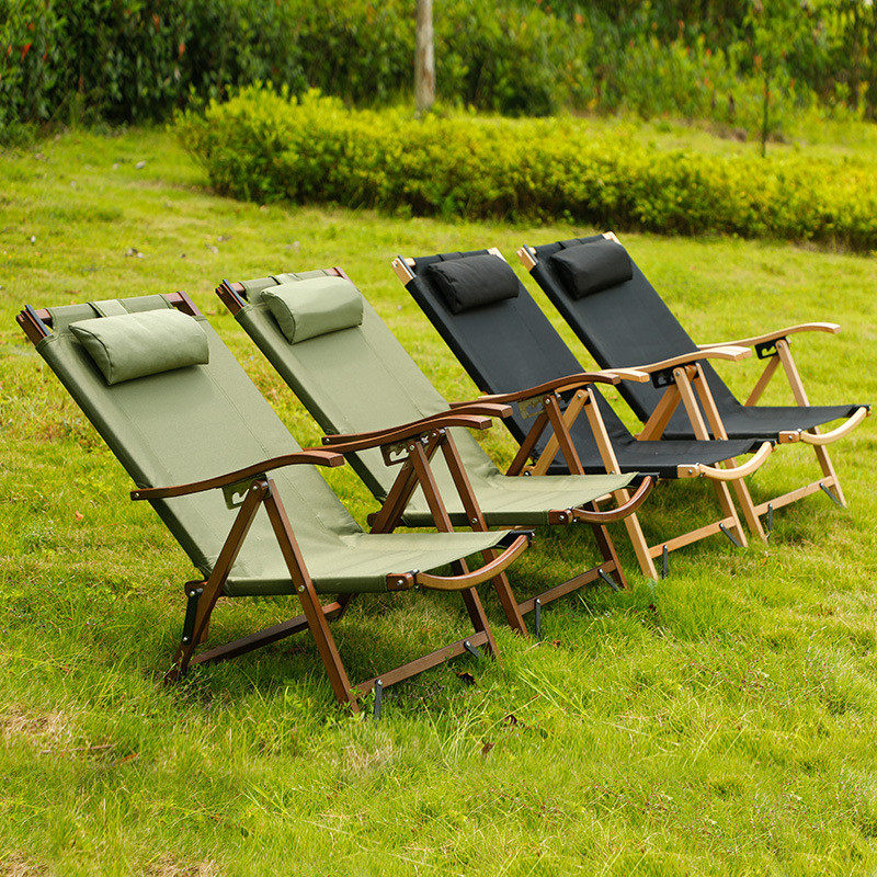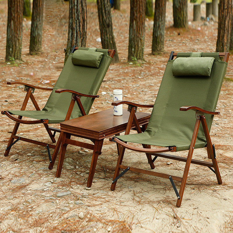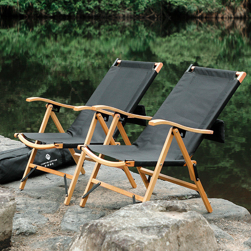 Outdoor fine camping high backchair picnic camping equipped with self-driving park folding solid wood adjustable high-backed chair