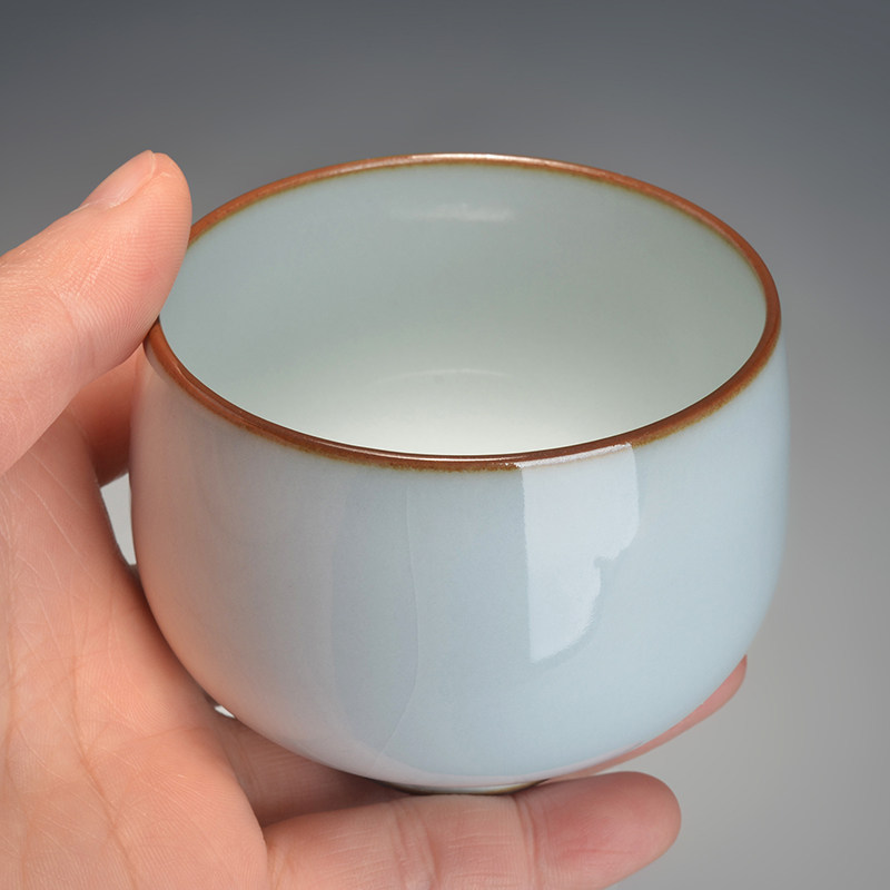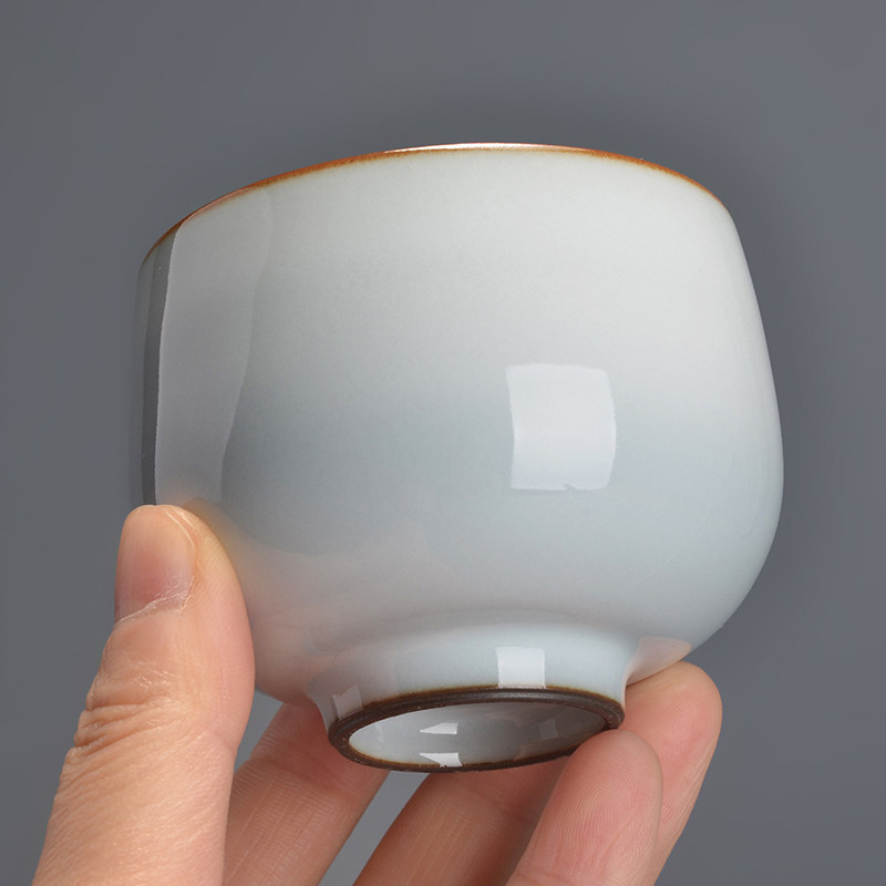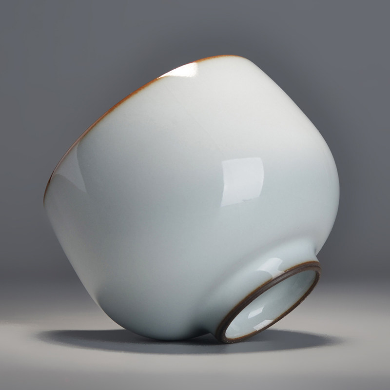 Grid object official kiln moon white glaze round melting cup tea cup master cup handmade single cup Jingdezhen porcelain kung fu tea set
