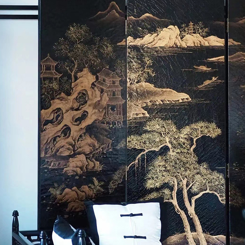 New Chinese-style retro screen office landscape paint painting hotel villa simple wooden custom folding partition decoration