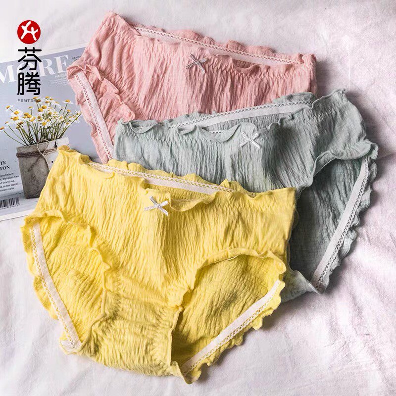 Fendeng underwear female Summer pure cotton antibacterial whole cotton breathable middle waist girl Japanese cute comfort female triangle trousers