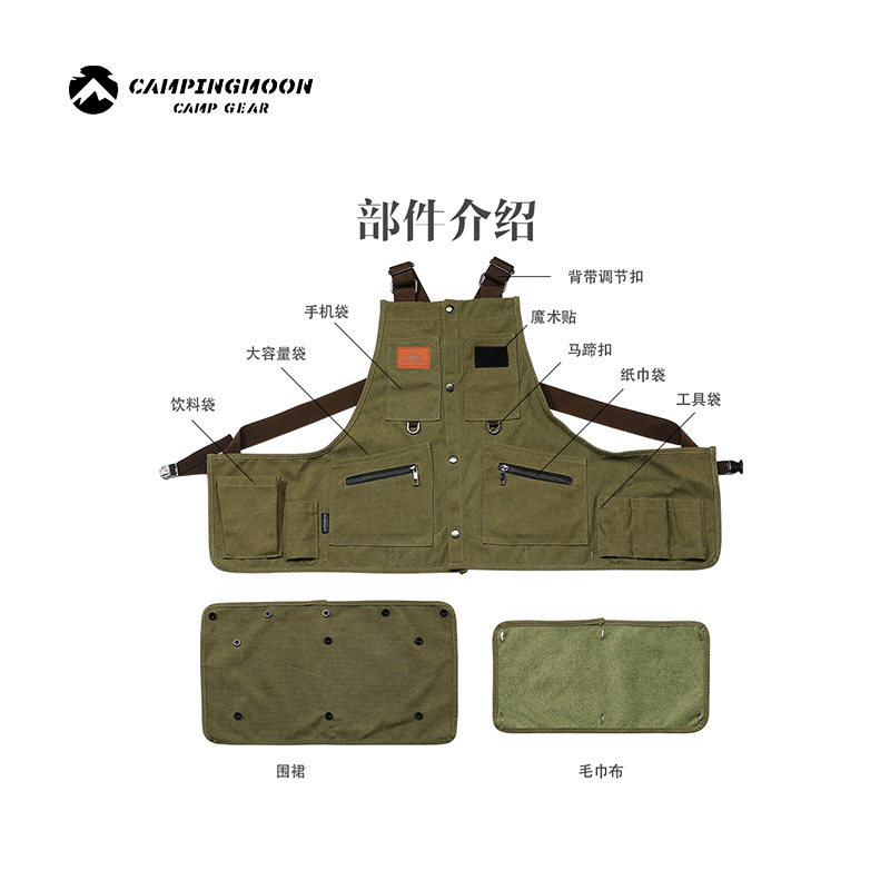 Keman outdoor camping overalls cotton fire apron multi-functional expandable picnic equipment storage vest