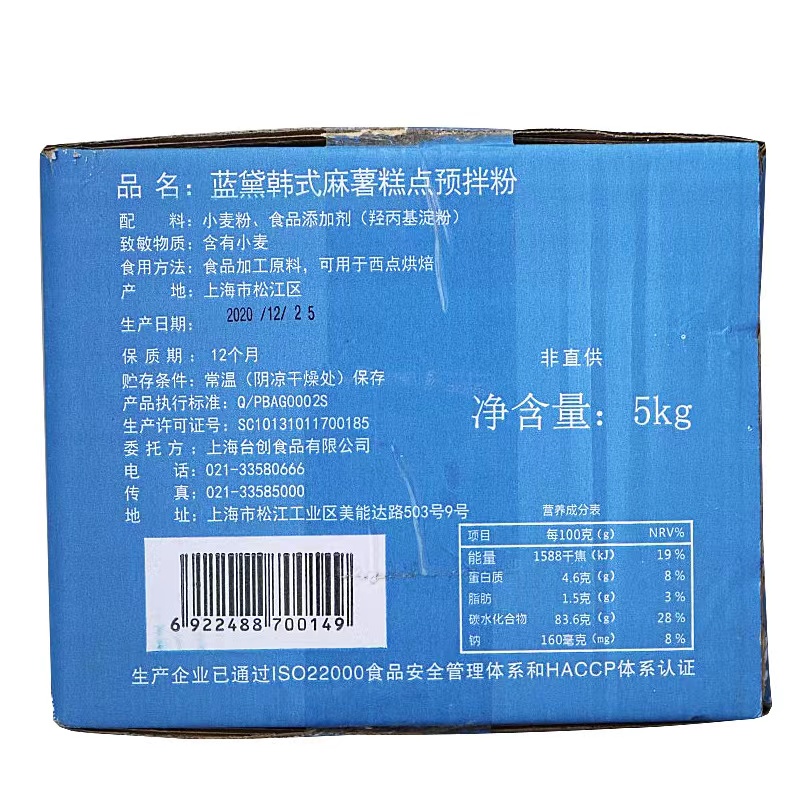 Tatron Blue Dahan Style Hemp Potato Premixed Powder 5kg Potato Spherical Bag Powder Milk Tea Shop Special Commercial Baking Raw Materials