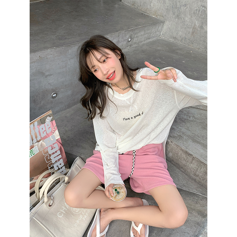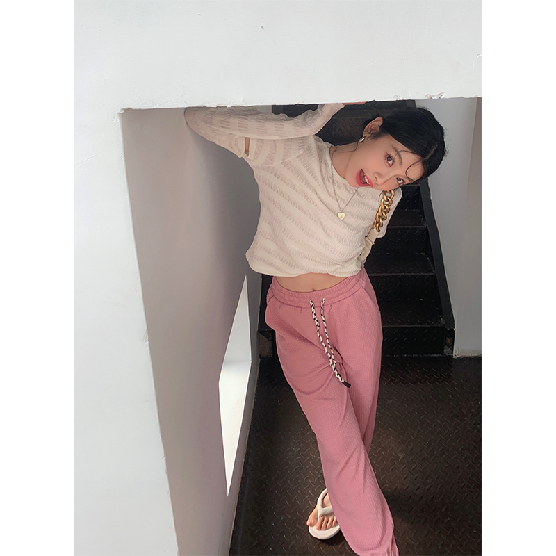 Zhang Beibei ibell2022 high-waisted thin casual pants women's all-match lazy casual length-adjusting short sports pants