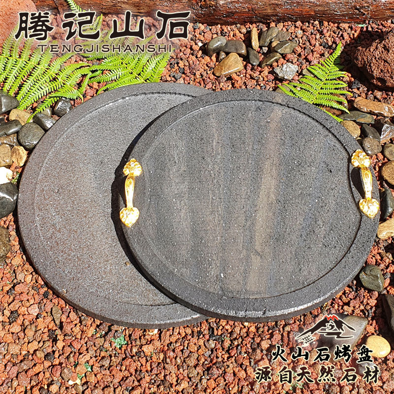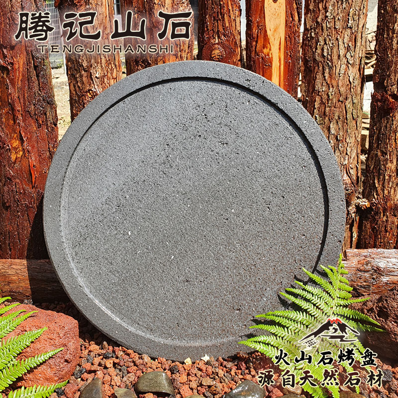 TenChong Natural Round Volcanic Stone Grill Pan Roast Seafood Roast Beef Steak Home Smoke-free No-Hander Slate Burn-Taobao
