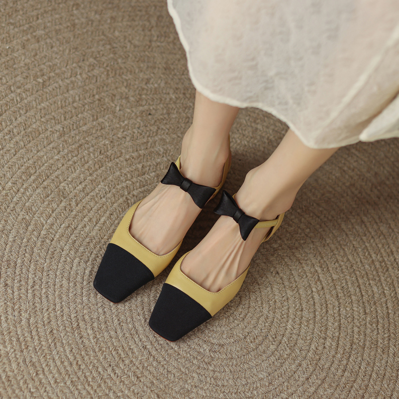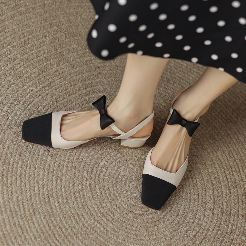 Han Edition Baiqing Fashion Pixing Little Fragrance Butterfly Bow Head Sandals Coug Heel 2022 Summer New Model