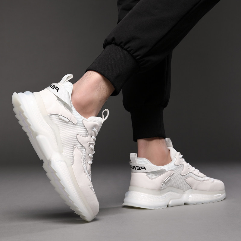 Men's shoes Summer breathable 2022 new men's sports running casual tennis face tennis shoes Little white heightening older daddy Shoe men