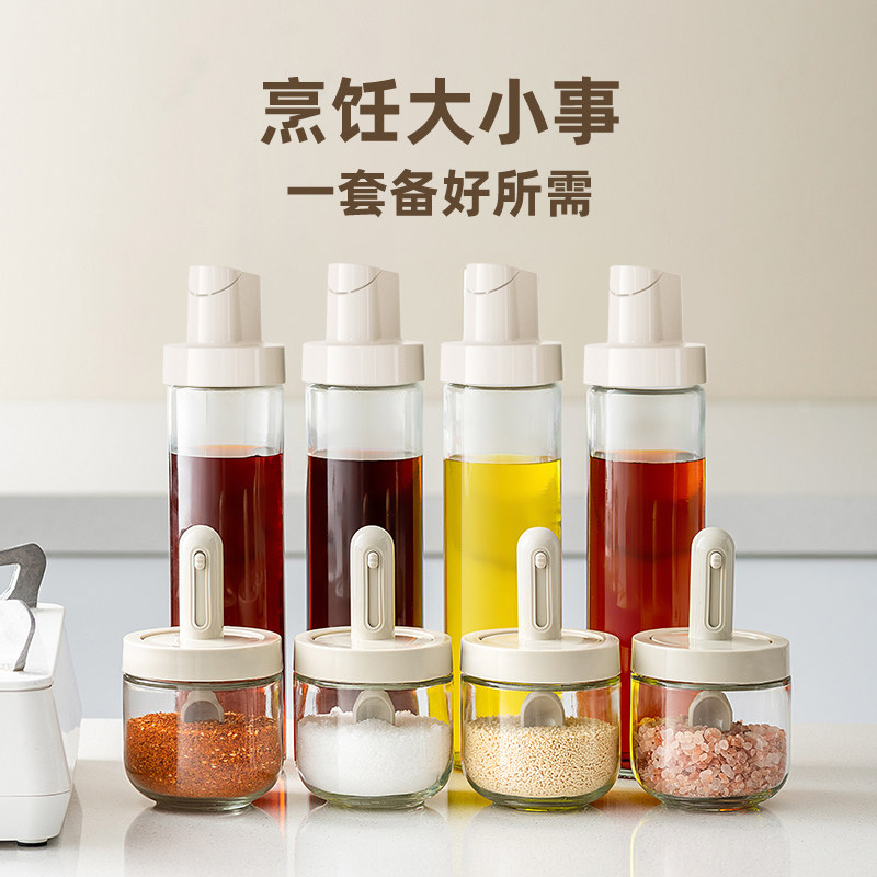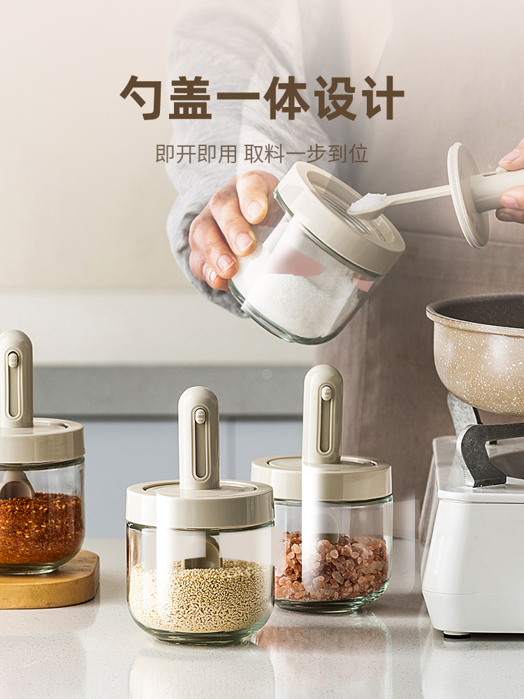 Tinnitus telescopic seasoning box glass kitchen seasoning jar MSG Seal seasoning jar Home Salt Tank Seasoning Bottle Suit-Taobao