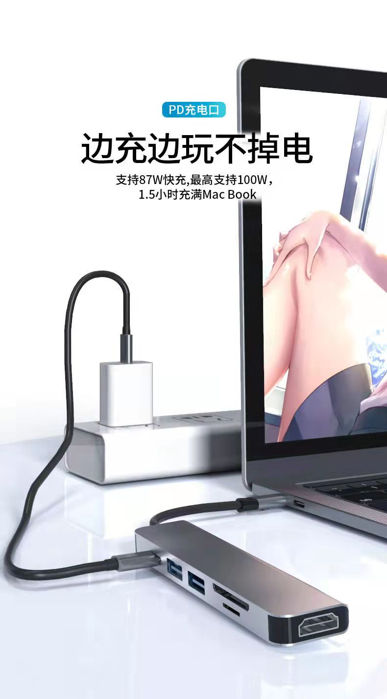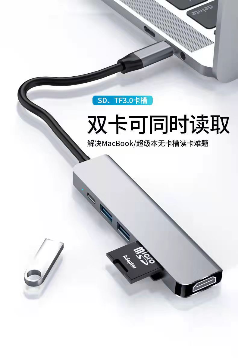 TypeC to HDMI docking station USB3 0 card reader mobile phone computer TypeC six-in-one projection line 4K HD