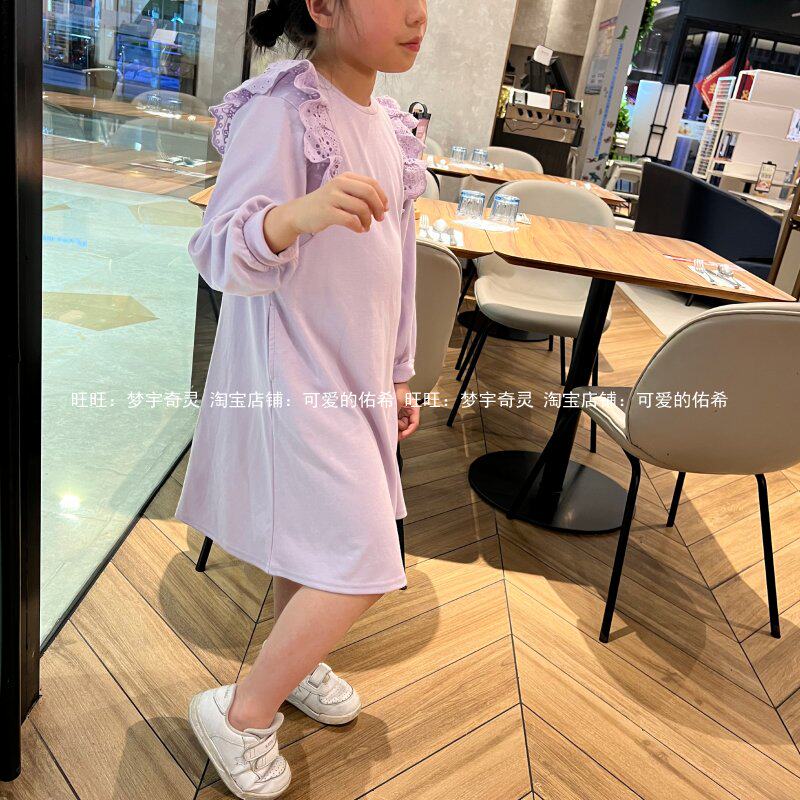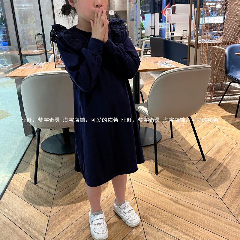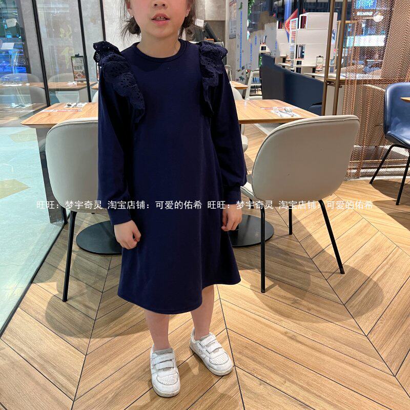 Japanese single spring and summer alc girls pure cotton thin dress pleated lotus leaf shoulder long sleeve round neck skirt solid color skirt