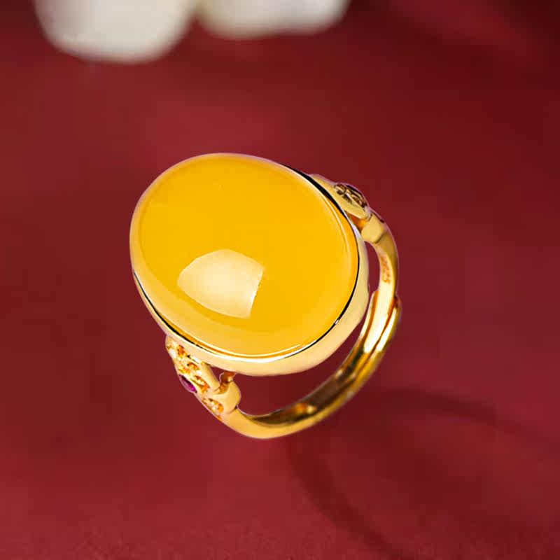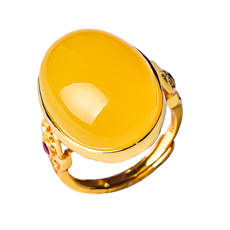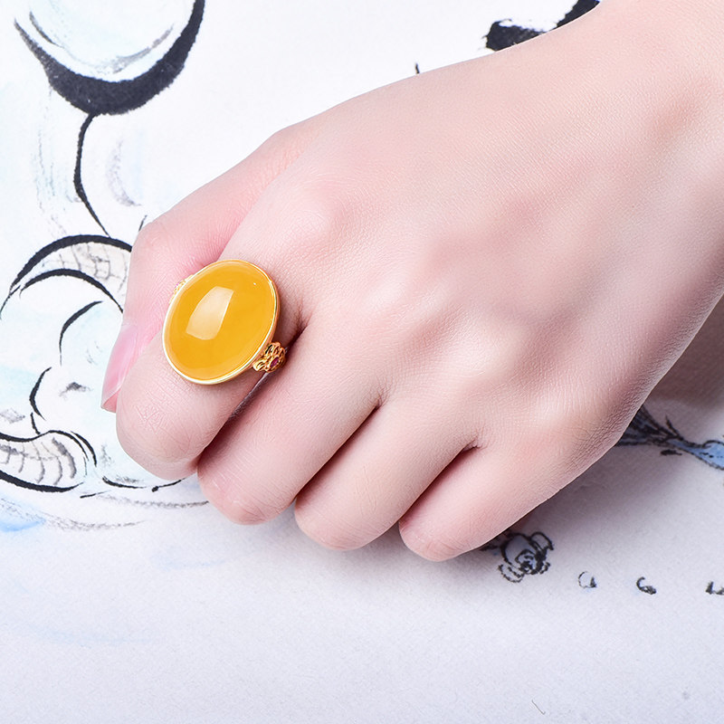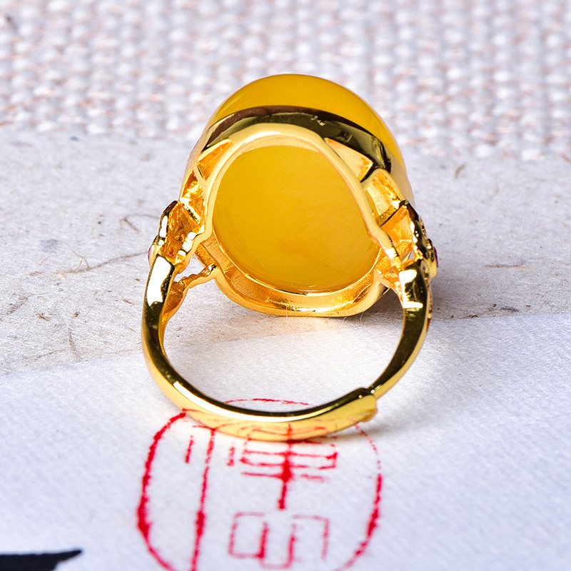 Zhenya jewelry natural honey wax ring chicken oil yellow honey 925 silver gold plated woman