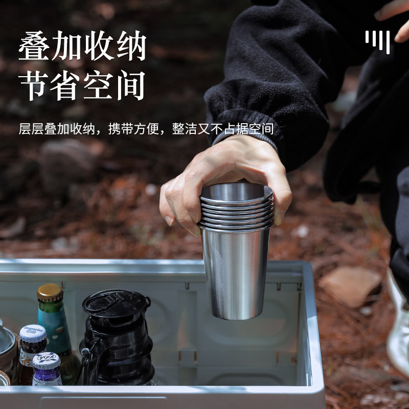 Outdoor water cup 304 stainless steel metal cup camping picnic barbecue beer mug 350ml large household coffee cup