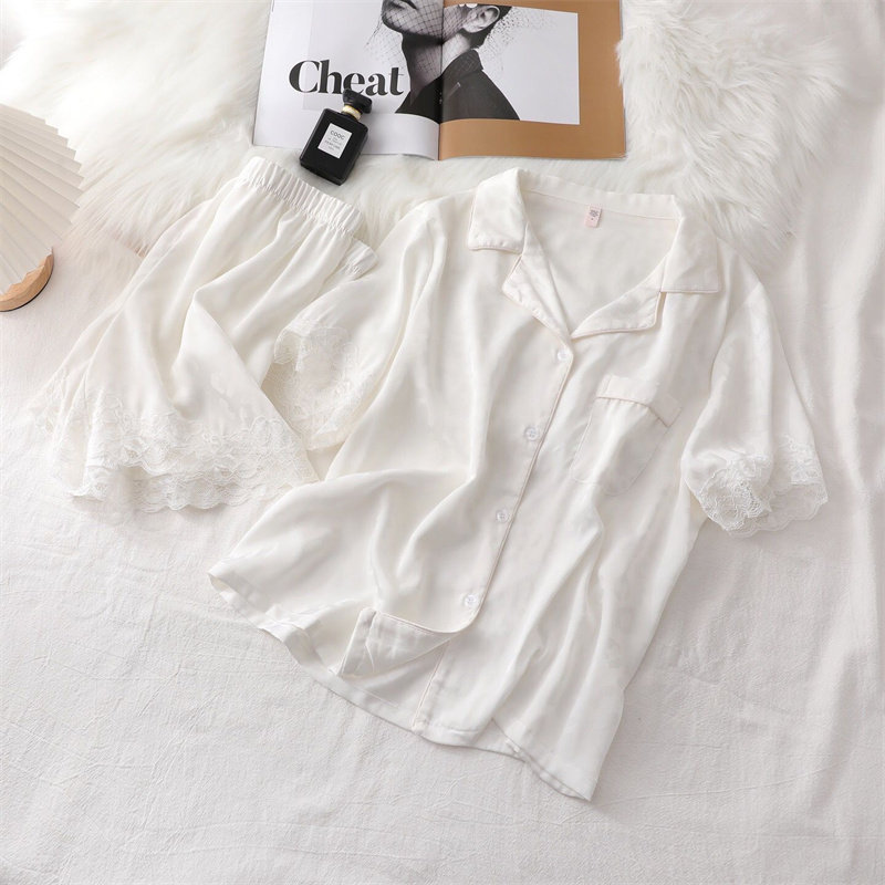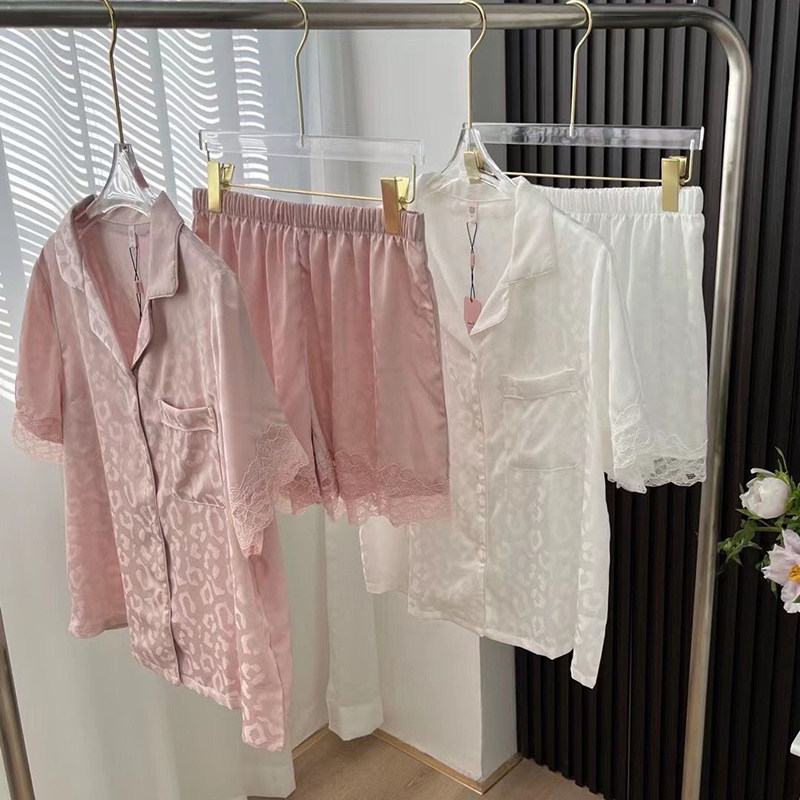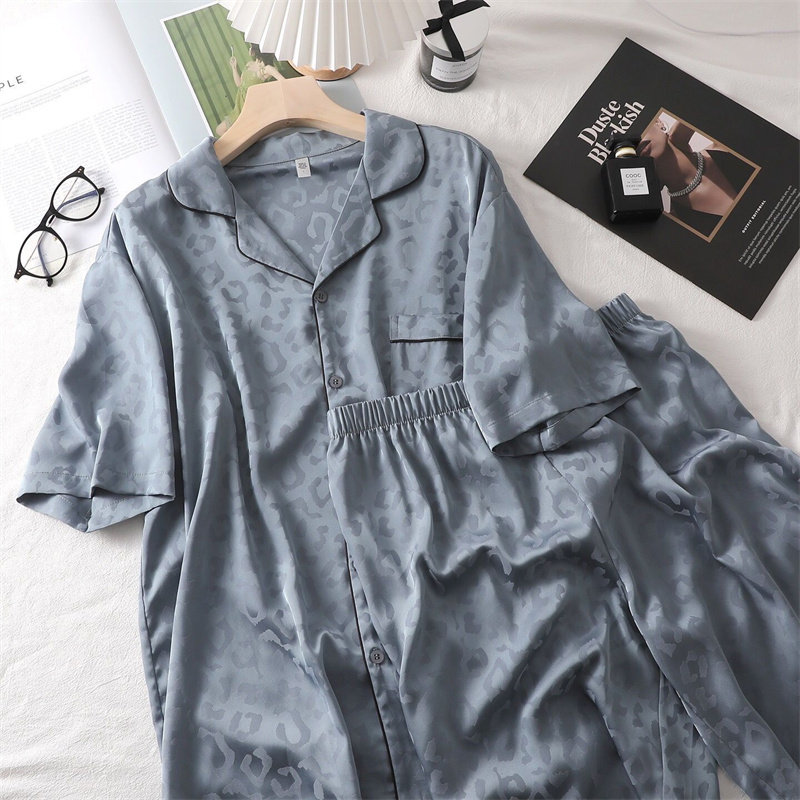 Couple's thin suit simple BAO WEN color high-quality silk slippery pajamas women's 2022 new summer ice silk short sleeves