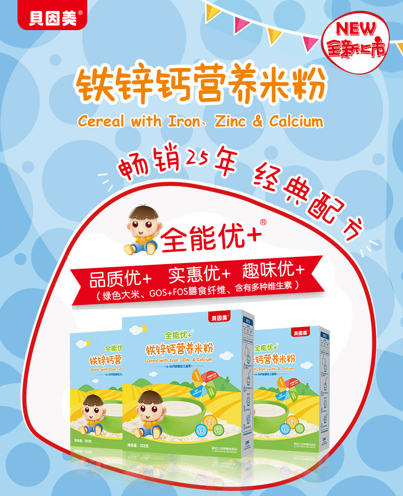 Beingmei infant calcium iron zinc rice flour original rice glutinous rice high iron nutrition rice flour 325g baby non-staple food rice flour