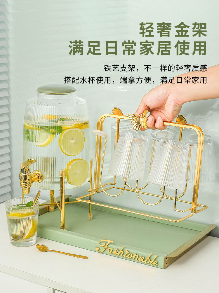 Porcelain wood one net red glass water set hospitality drinking cup with hot water kettle light luxury cola fruit tea bucket