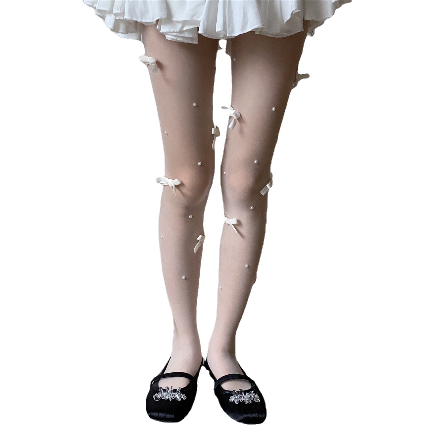 Giant Cannon Uncle Spring Summer White Silk Stockings Velvet Butterfly Knot Artisanal small crowdsourced sweet and beautiful pantyhose